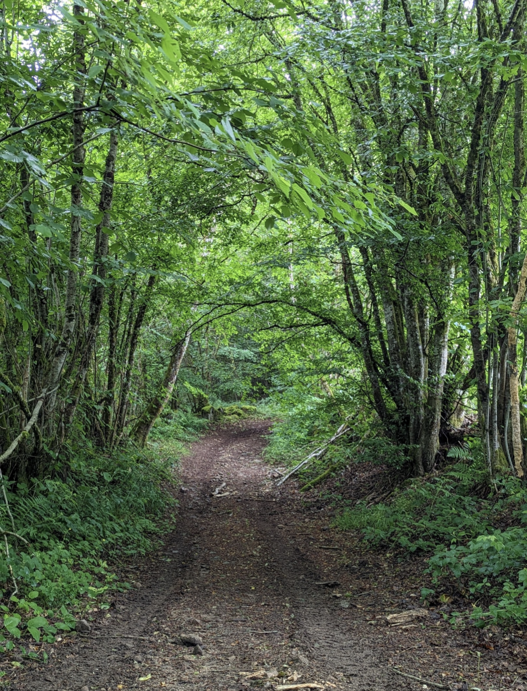 First turn down a gravel road and a car was in our way. The car driver apologized and then asked, curiously, and a bit incredulously, are you taking this road? And he made a 😳 face and made a motion with his hands that looked like a lot of hills. We thanked him for moving and innocently went on our way. The next few kilometers were an adventure! Rocks and mud, wet leaves and some tough little hills. By the time we saw pavement we needed to stop and clean our shoes, and catch our breath, and we had only done 3k 😂. It was like a mini Paris-to-Ancaster race.